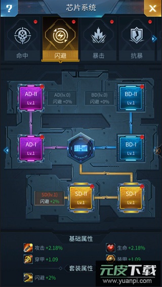 每个芯片组都包含蓝色、紫色和橙色品质的套件,集齐并激活整套芯片可获得额外的套装属性。芯片能提供攻击、生命、穿甲和装甲等基础加成,且必须激活前置芯片才能解锁后续芯片。激活芯片需要消耗核芯,不同品质的芯片消耗的核芯等级也不同。