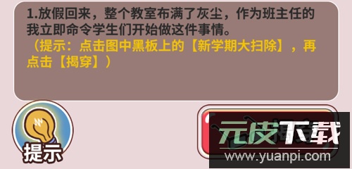 1、首先点击黑板上的“新学期大扫除”字样,然后按下揭穿按钮;