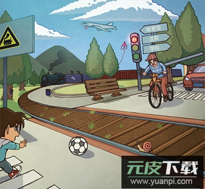 5、捡足球的小孩说明闯红灯的原因,点击小孩。