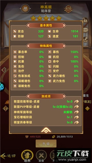 3、消耗星耀能量石可提升明堂供奉等级,从而增强全体武将属性;