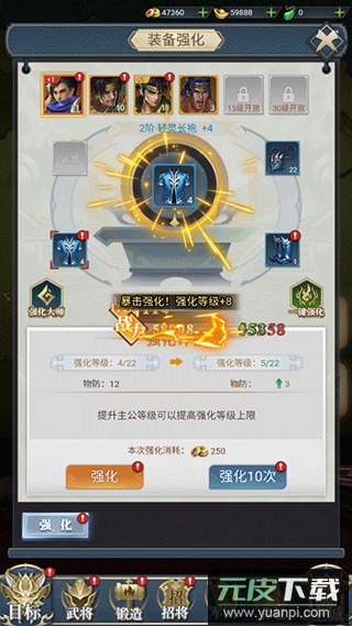 1、汇集三国时期大量著名武将,可自由招募并搭配阵容,激发强力的组合技能;