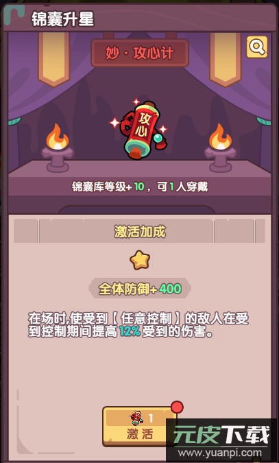同时,激活新的锦囊或对已有锦囊进行升星,均可提升锦囊库的整体等级,从而为所有武将带来属性增益。单个锦囊的星级提高后,还能供多名武将同时装备使用。