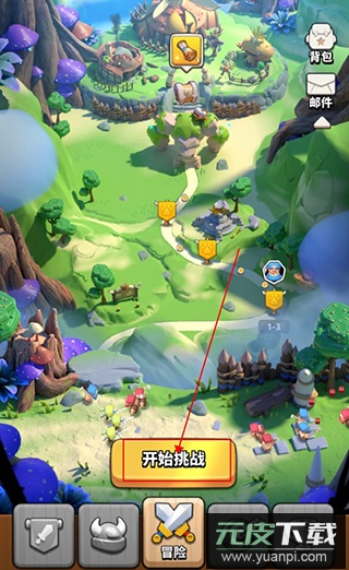 下载安装后,进入游戏点击冒险界面,即可开启首场挑战。