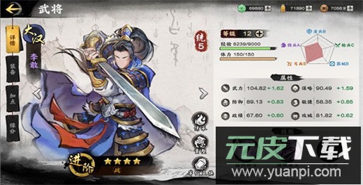 李敢在紫色将领中输出较为稳定,其技能“征伐四方”能在战斗的奇数与偶数回合分别造成武力与谋略伤害。他在过渡队伍中能够承担输出职责,配合“擒贼擒王”“一击止啼”等技能补充伤害,从而提升整体作战强度。