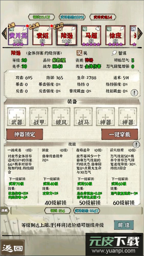 武将升级时,卡牌品质与星级越高,升级成功率则越低。此外,为武将配备合适装备至关重要。玩家可通过商城礼包快速获取成套装备,也可通过关卡、副本与任务逐步收集。