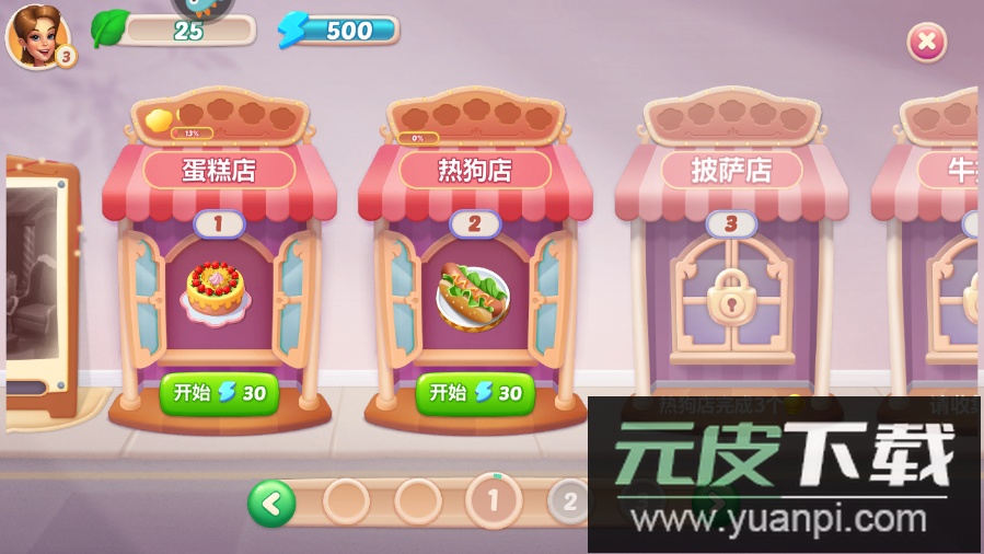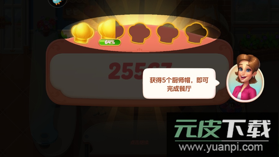 16、不断累积分数推动餐厅进度,集齐五顶厨师帽即可成功经营完一家餐厅。