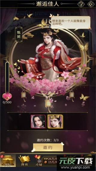 赏赐宫殿:主公可以为心仪的妃子赏赐专属宫殿,并为之命名与升级,受赏妃子将获得大量亲密度奖励;