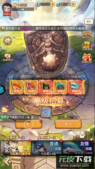 5、通过招募系统,你有机会获得传说品质的强大宠物;