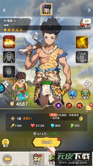 3、点击角色界面,可进行培养升级、转生操作,还能装备符文与提升骑术等级;