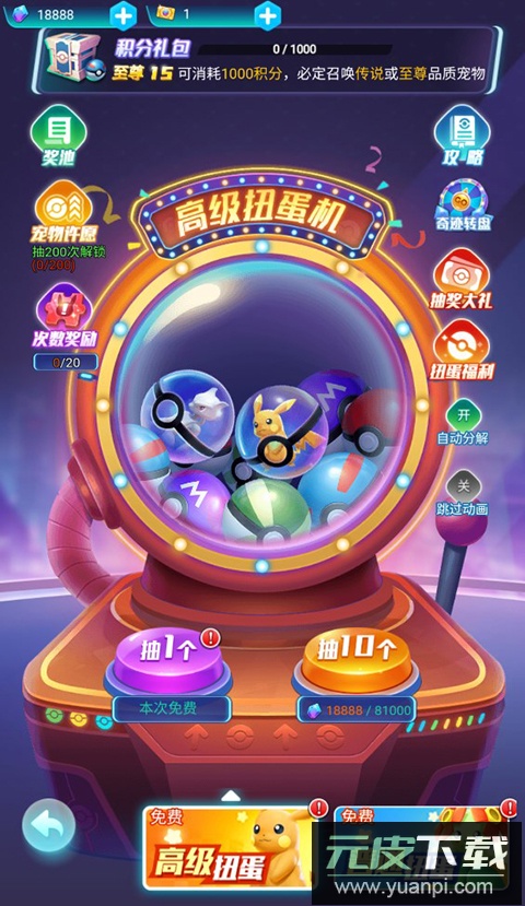 扭蛋是获得宠物的最直接方式,分为高级扭蛋与普通扭蛋两种,高级扭蛋有更高概率产出高阶级宠物。