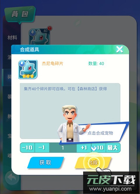 玩家可以在背包中使用收集到的宠物碎片,直接合成对应的完整宠物。
