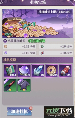 4、挂机宝箱有概率产出装备,通关关卡数越高,获得高品质装备的几率越大;使用加速挂机功能也会增加获取机会。