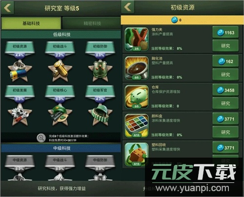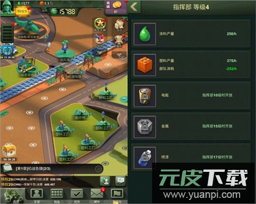 随着进程推进,可解锁地块用于建设涂料、塑料、电能、金属及喷漆五类资源工厂,同时也能建造军用帐篷与医疗所,以提升训兵效率与伤兵治疗速度。布局时应均衡各类设施数量,并持续将其保持在最高等级,这样能最大化每日资源产出效率。