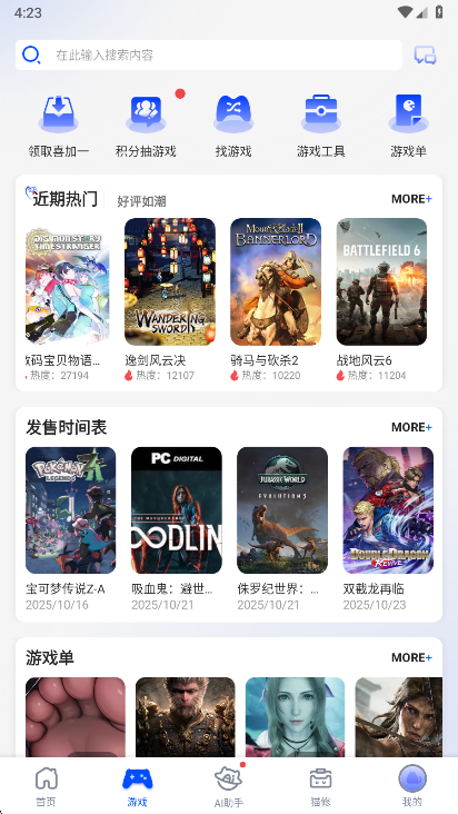 3、在游戏页面中,你还能看到各种游戏推荐。