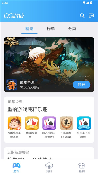 QQ游戏大厅官方正版是腾讯出品的综合游戏服务平台,平台内搭载了海量不同品类的游戏内容,欢乐斗地主、中国象棋、指尖麻将等热门游戏都可以直接体验,用户不用单独下载零散的游戏安装包,部分支持跨端互通的游戏会在名称后缀标注互通版,方便用户快速识别,还能直接和其他客户端的好友联机对战。