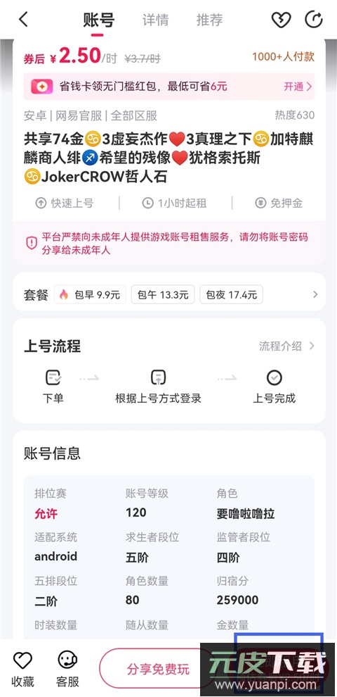 3、寻找安全、方便且无广告的账号租赁服务的移动端玩家。