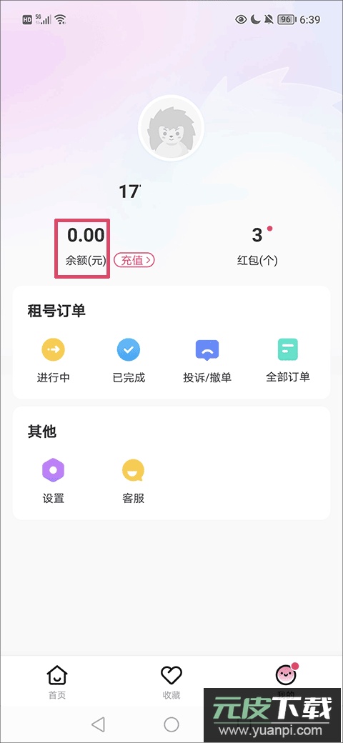 1、打开应用,在“我的”界面找到并点击红色方框内的功能选项,进入余额页面。