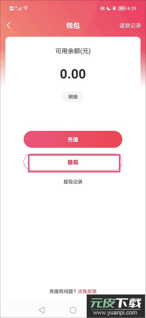2、在钱包界面中点击“提现”选项,系统将跳转至绑定支付方式的页面。