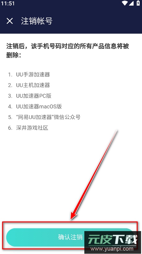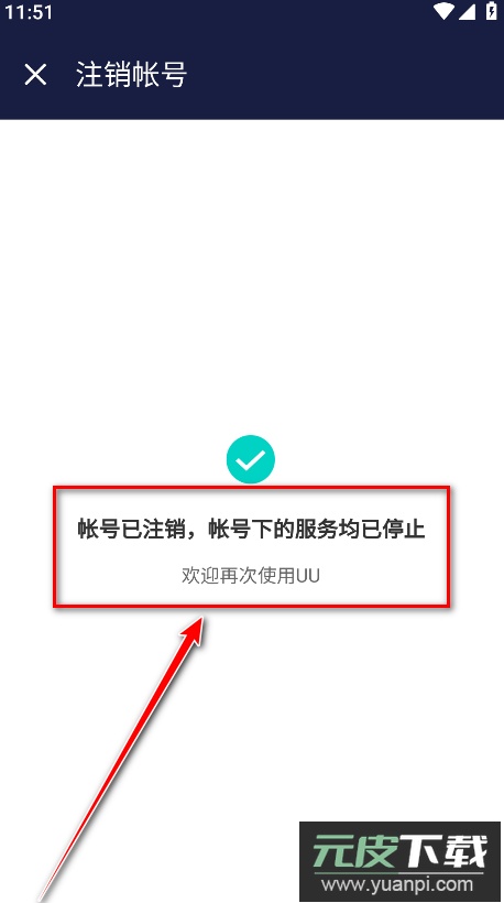 9.页面将提示:帐号已注销,相关服务均已停止,欢迎再次使用UU。