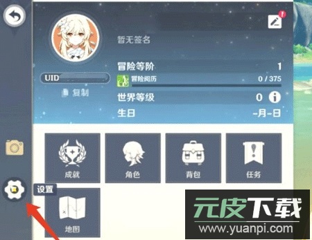1、首先使用toptop手机版账号登录游戏,进入后点击“设置”。