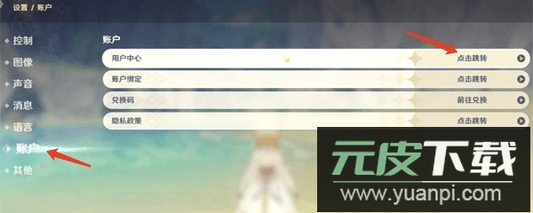 2、接着依次点击“账户—>用户中心—>点击跳转”。