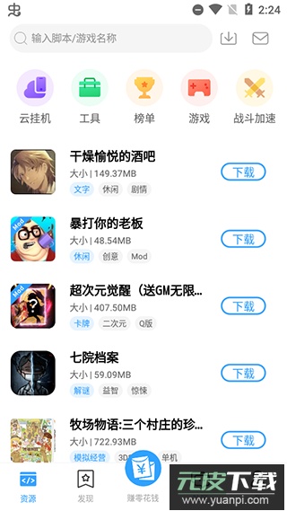 主要划分为云挂机、实用工具、热门榜单、游戏库、战斗加速插件等五个类别,为用户整合各类实用资源。