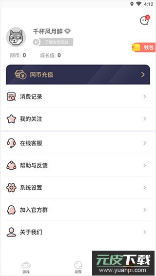 4、此外,在我的模块中可以查看个人网币余额、账户信息等资料。