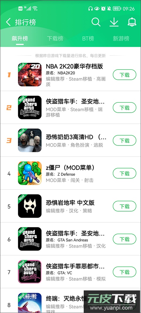 提供热门游戏榜单,包括流行榜与新游榜等分类指引;